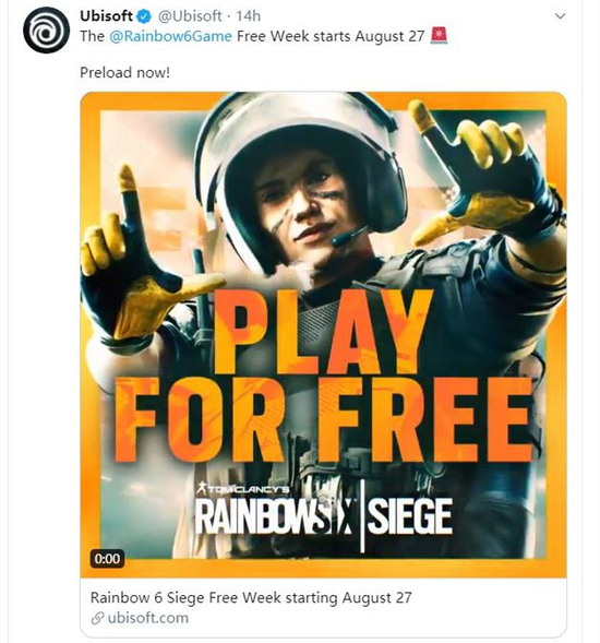 自8月27日起,《彩虹六号:围攻》将开启为期一周的全平台限时免费游玩活动。