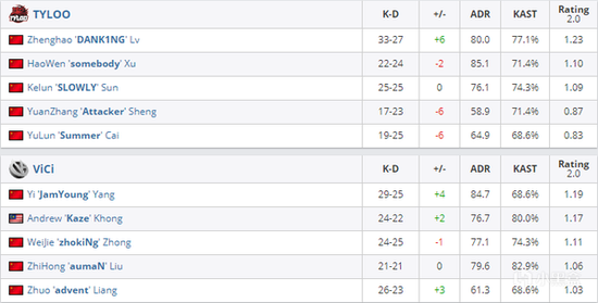 第二十二回合,VG选择A区骚扰后进B。但TYLOO的B区防守自始至终就没有动过,面对双B防守,VG的三人进攻略显乏力。虽然Kaze依靠个人能力拿到了1V1残局,可最终还是没能成功为队伍续命。TYLOO以16-6轻取图三,总比分2-1再次击败VG,挺进ESL One科隆亚洲区总决赛。