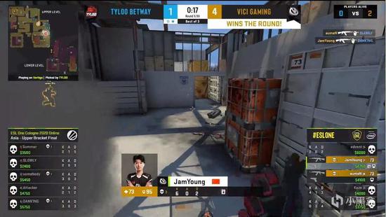 可紧接着,JamYoung又抓住了对手的补枪失误,用手中的一把小蜜蜂接连撕碎两人,并且成功拿下了1V1的残局,VG再次强起翻盘。而DANK1NG也不想认输,一把AK手起刀落突破A区,直接撕碎了VG的防守。6-2。