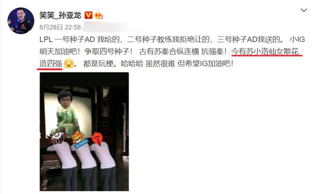 在上一篇文章中,小编为您详细介绍了关于《SN斩获三号种子进军世界赛,LGD被苏宁打成0-8,想进S赛得看IG?》相关知识。本篇中小编将再为您讲解标题LPL三号种子出炉,德云色笑笑嘲讽IG:苏小落“仙女散花”造四强。