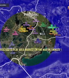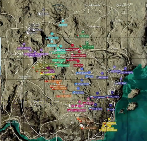第二场比赛同样采用沙漠图,飞机航线从上至右下,SMG仍然飞往皮卡多,但是这一次圈刷在了地图右下方。