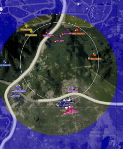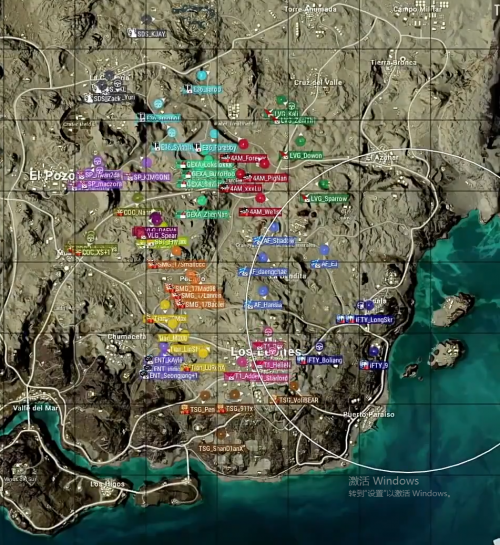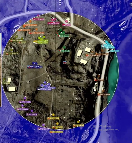 第一场比赛采用沙漠图,飞机航线从右下至左上,SMG跳往皮卡多。安全区刷在了地图中下方,而SMG的位置恰好就在圈中心。