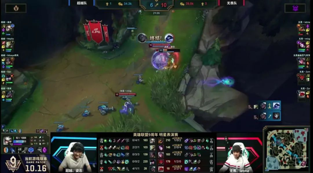 超过队尽管居于优势,但控野、带线才能照旧强势,35分钟阁下,超过队四人与无畏队五人正在下路构成牵制,周杰伦捉住机遇上路带线,胜利将兵线从二塔带到洼地水晶,但终极被赶来的刀妹收下人头。