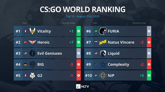 就在今日凌晨,HLTV公布了最新的世界排名榜单,在ESL One科隆欧洲区斩获冠军的Heroic一跃来到世界第二的位置,甩开A队9个名次坐实丹麦一哥的位置。而获得了亚军的Vitality也是在接连几个赛事获得亚军之后升到了第一的位置。而在ESL One科隆中早早淘汰的BIG也是跌落到了第四的位置,新阵容的NiP则是凭借着这次3-4名的成绩第一次进入到世界前十的位置。