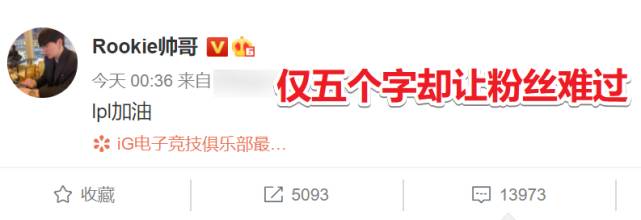 比赛结束之后不久,Rookie就发表了微博,不过并非是进行道歉,或者是聊这场比赛的结果,只有简单的“LPL加油”五个字。这次IG战队没有进入世界赛,Rookie也没办法在赛场上帮助LPL联赛争夺更高荣誉了,只能送上自己的祝福,确实是让人唏嘘不已。