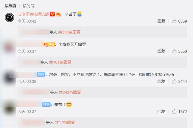 只不过,虽然这条动态只有短短的五个字,却让粉丝们非常难过,毕竟如今IG战队被淘汰,Rookie的心里肯定也是非常难受的,但即使如此他也没有表露出来,只是默默地为LPL赛区加油。甚至有粉丝看到这种情况之后,让Rookie下个赛季换战队,还得到了很多人的赞同。