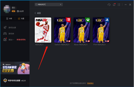 等《NBA2K21》游戏正式上线后,到Steam游戏库找到游戏直接下载即可,不过上线当天会有很多玩家集中下载届时会出现下载慢或卡顿等问题,建议使用加速器,奇游加速器已对本作进行了专项适配网络加速,支持满载加速,笔者实测可达20MB/S,能有效解决登录不上、卡顿延迟等问题,同时奇游加速器也支持平台商店浏览加速、公园模式专项加速,新人下载还会赠送45元优惠卷: