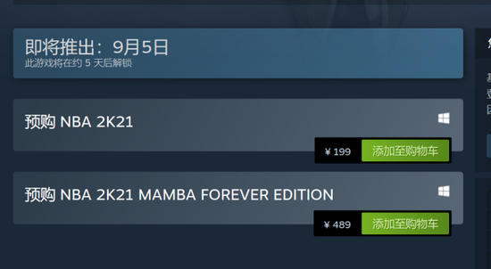 有两个版本,PC普通版199元,曼巴版(科比纪念版)489元,选择一款添加购物车进行付款即可