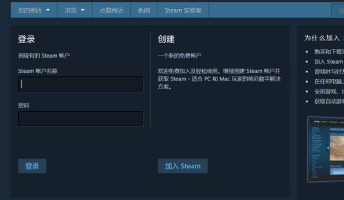 已有帐号可直接登录,没有Steam帐号可创建一个新的账号并登录。