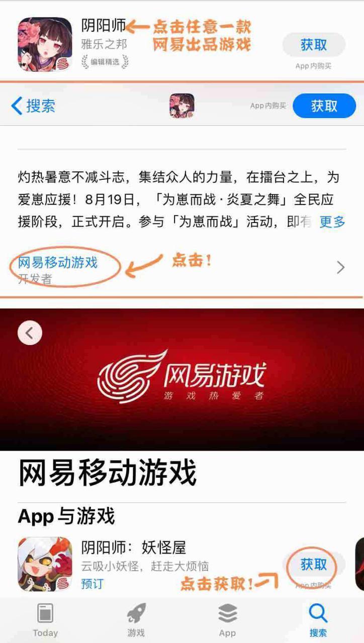 3.正在App Store中点开恣意款网易出品游戏,点开“网易挪动游戏”,正在开发者页面中点击“阴阳师:魔鬼屋”进行预订。