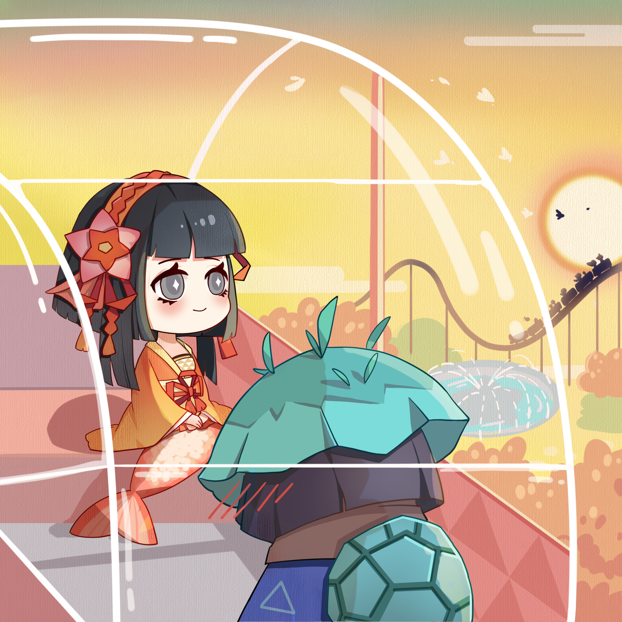 过山车组也“啊—”了一终日,只剩下两只小魔鬼还正在摩天轮里用“读心术”交流...