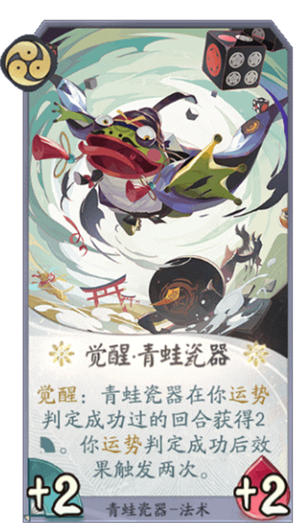 田鸡磁器是运势队的首要成员之一,他的根底才能是,每一次断定胜利均可以正在以后回合失去攻打力加成。觉悟之后,田鸡磁器还能够额定触发一次攻打加成成果。