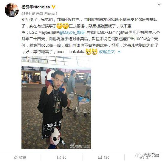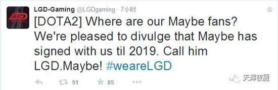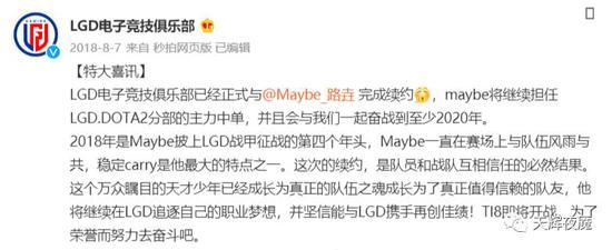 TI6结束后,有消息称有战队要挖Maybe,8月18日LGD的经理超人蛙辟谣说Maybe属于绝对非卖品,且他的合同还有2年6个月零24天,照此推算,Maybe的合同应该是到2019年3月14日到期。