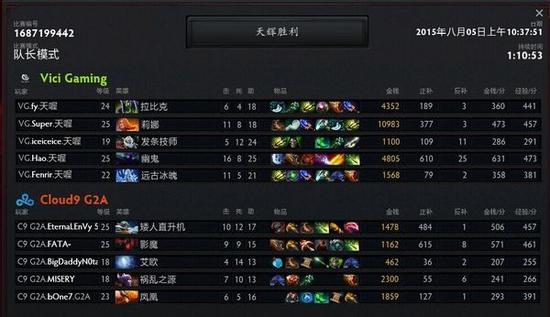 TI5败者组第二轮,VG对阵到C9,上将Hao祭出幽鬼。即使前期被矮人直升机带队刚三,发育不良,上路高地早早失守,32分钟才戴上辉耀,然而Hao并不慌张,因为他使用的是幽鬼——翻盘的代名词。