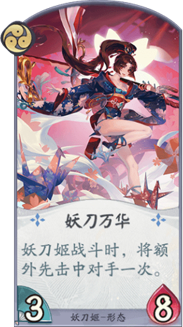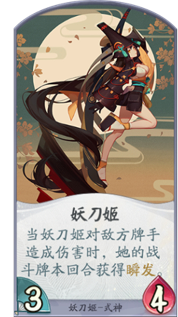 然而一旦脱离战役,妖刀姬会由于损伤太多人而变患上自责无比,是一个兼具残暴和蔼良的抵牾性情的式神存正在。被玩家称为“刀妹”的妖刀姬,正在《阴阳师:百闻牌》中定位是单攻迸发,可继续攻打。