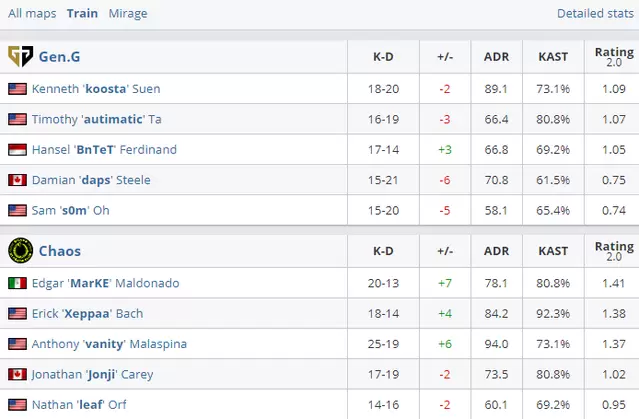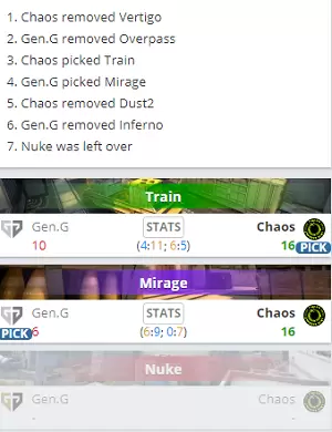 Chaos 2-0 GEN.G(Train 16-10;Mirage 16-6)