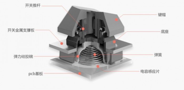 今朝市场上年夜少数静电容键盘采纳都是日本的专利技巧。其原理是正在按下按键后,感到电路检测到电极之间静电容量值的变动从而断定触发。因为不了物理触点的磨擦,应用寿命会愈加短暂,并且辨认呼应速率更快,乐音也管制患上更好。静电容键盘的自摸次要起源于弹力硅胶碗,锥形弹簧则提供辅佐撑持,也恰是这样的设计合营着优秀的用料与唱工,静电容键盘的自摸能力放弃短暂没有变。
