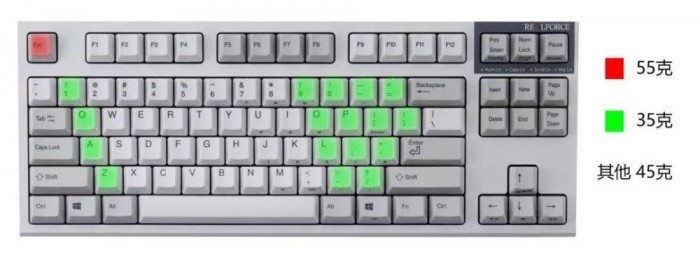 静电容键盘自摸也没有是陈旧见解的,没有同品牌的静电容键盘另有30克、45克和55克等没有同压力克数的设置装备摆设,压力克数越小,自摸越轻,例如HHKB静电容键盘的压力克数根本都是45g,而REALFORCE 燃风止电容键盘则是提供了全局30g、全局45g和分区压力等没有同类型的产物,分区压力的规划是依据规范指法中没有同手指担任的区域进行划分,升高小指及知名指担任的区域,适宜于进行文本录入的用户。