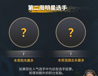 此外,我们每周将根据比赛各种数据结果,评选出两位明星选手(具体评选标准请于活动页面上查看),如果你足够幸运,在前一周为他们投票,那你将获得额外积分的奖励,希望这些积分奖励能够助你在积分榜上更进一步。