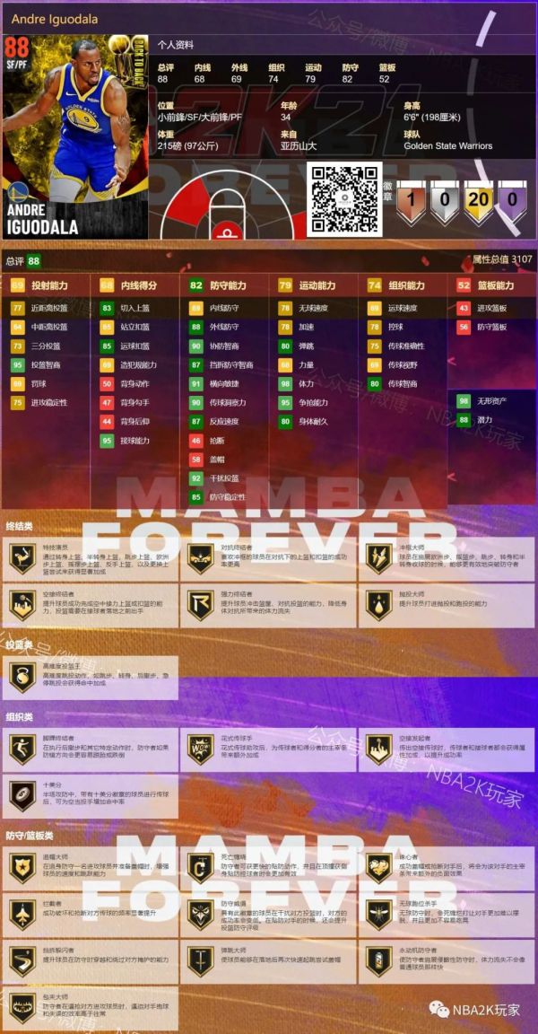这张当当给了3422的总值,主打内线进攻,虽然防守属性给的不算太好,但208CM能打SF在现阶段还是有点小占便宜,这张卡总的来看属性给的比较均衡,当个工具人肯定没毛病,中规中矩,但并不能有什么突出表现。
