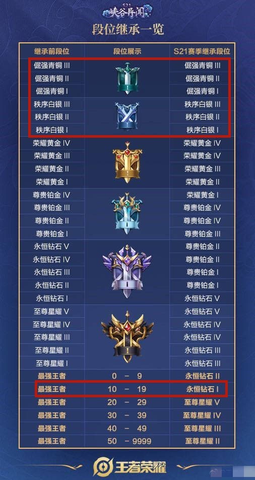 王者10星以下变成钻石二,10~20星变成钻石一,新赛季钻石段位将会变得更难打。