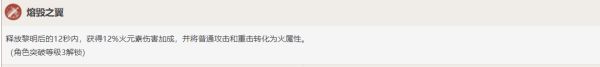 以此类推,例如迪卢克的天赋4效果是重击体力消耗减低并且增加重击持续时间,所以迪卢克可以选择重击加伤效果的圣遗物套装,释放元素爆发造成大量火元素伤害后会12秒内普攻也会变成火元素伤害且还会有伤害的加成,所以火元素伤害加成与使用元素爆发后获得伤害加成会给迪卢克带来很高的提升。