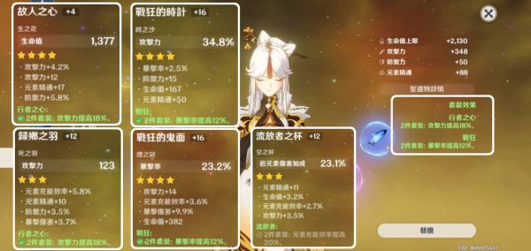 这个阶段的玩家大多都开始有紫色的行者与战狂,所以可以给凝光穿上。羽毛及沙漏都选加攻击的配合四星武器金珀的基本面板,凝光的重击与大招攻击输出可以非常高(我自己没有好的羽毛所以搭三星的),杯子一定要选岩元素伤害加成,目前我没有刷过任何四星岩伤杯,所以我就只好用三星的岩伤杯。 头冠选择爆击头,四星爆击头+16可以有23%的爆击加上人物自带5%爆击与套装12%就可以有40%爆击率,所以爆击率不低,副词缀可以优先选择爆伤与攻击可以把输出收益提升到更大。