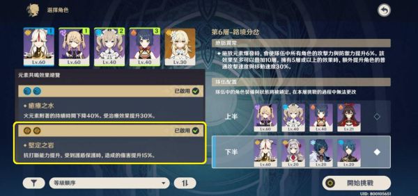 诺艾尔堆防御增加护盾与回血量,护盾及自身天赋可以多一点容错率,而这个位置其实也可以给我们的主角岩主,但岩主比较偏向障碍物型而非辅助型,开大招可以增加10%爆击率,有技巧的丢荒星可以把怪卡在石头上或者挡住侧边远距离来的攻击,其实还挺好玩的。可惜深境螺旋机制是竞速,岩主会比较适合开放世界。