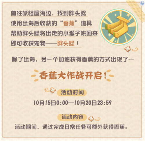 活动结束后,家主仍可在出海时触发随机特殊事件获得香蕉。