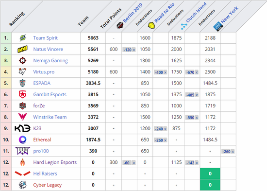 独联体地区RMR积分榜如下(第1-2名传奇组、第3名挑战者组、第4-5新挑战组):