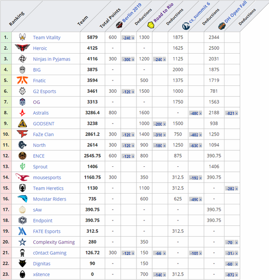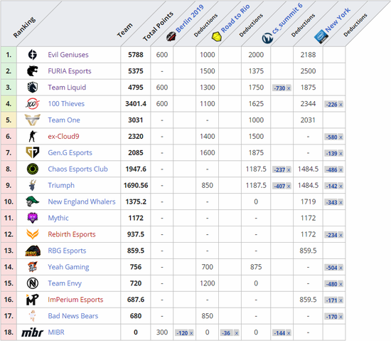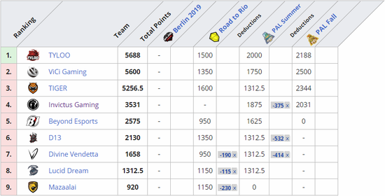 欧洲区RMR积分榜如下(第1-3名传奇组、第4-9名挑战者组、第10-12名新挑战者组):
