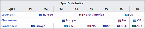北美地区RMR积分榜如下(第1-3名传奇组、第4名挑战者组、第5名新挑战者组):