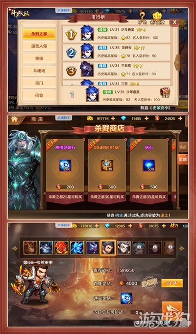 处理好包裹资源,最后再去斗魂场,往前打到最优的名次。同时别忘了防守新增一个人物,40级可以多上一个援助。