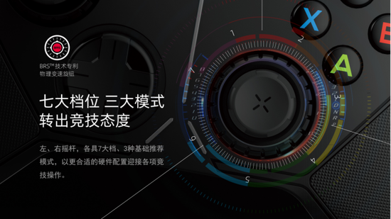 BRS物理变速旋钮拥有七大档位,三大模式。它满足了玩家对于操作速度与精度的需求。玩家调节摇杆灵敏度时只需要转动旋钮即可瞬间完成调整,无需打开游戏设置菜单或者额外的软件。适用更多竞技游戏以及游戏场景,让玩家能以更合适的硬件配置迎接各项竞技挑战。