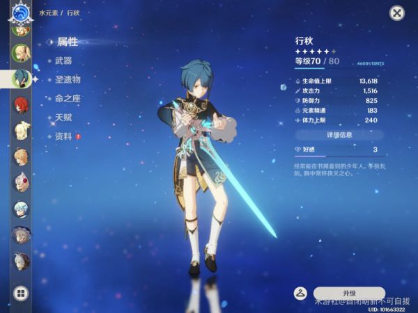 首先,我不建议玩家在资源有限的情况下特地去练行秋,而是在你能决定给行秋什么样的圣遗物,武器,和命座之后,再考虑练不练行秋。我分享一下我对行秋的理解,各位玩家可以做参考。