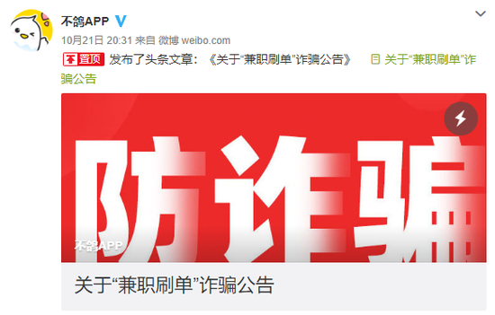 为配合净网行动,不鸽APP内及自媒体平台发布多篇防诈骗提醒的公告和说明。再次提醒广大用户,网络刷单兼职属于诈骗行为,请用户务必提高警惕,提高法律意识。不鸽APP也会配合净网行动在各大自媒体平台及时跟进相关公告及法律资讯。