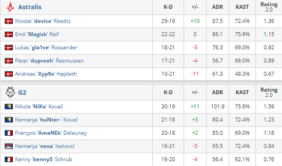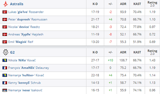 Astralis 0-2 G2(Dust2 11-16;Nuke 13-16)