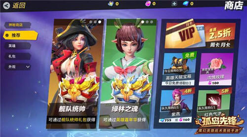 随着本周更新的完成,《孤岛先锋》商城也迎来了新一轮的特惠福利,玩家除了可在商城快捷获得“舰队统帅”礼包与新英雄“绿林之魂”以外,还可以免费领取天赋宝箱,分别以4折和5折的超大折扣得到罗宾皮肤“紫燕”与下落特效“红色气流”等精品。