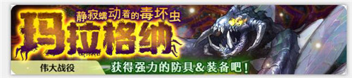 获得限定防具烈风系列的静寂蠕动着的毒坏虫玛拉格纳活动开放了!用烈风武具跟它死斗到底吧!