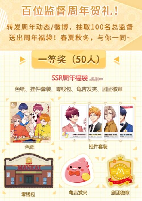 关注官方动态和微博,官方还将抽取共200名总监督免费送出海量周边哦!