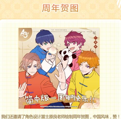 《A3!》简中版官方邀请到了角色设计冨士原良老师,为国服一周年绘制限定贺图~!唐装+小笼包?春夏秋冬四位队长体验中国风味,让人看了食指大动~