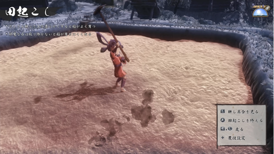 除了脫穀之外,整地也是一个比较繁重的作业。整地时需要我们长按对应按键然后放手,才可以完成一次有效的整地动作。虽然这块地并不大,但是要获得理想的效果需要多次重复操作,因此我们也可以交给宏完成。