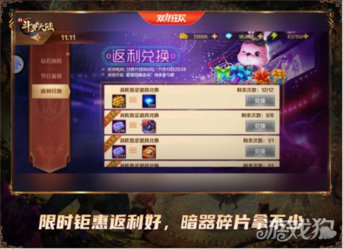 双十一钜惠来袭,暗器碎片拿到手软,【返利兑换】千万不容错过!