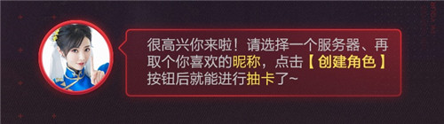 活动期间,各位格斗家在活动页面选择好心仪的服务器,输入喜欢的角色昵称,完成预创角色,便可开启抽卡模式。
