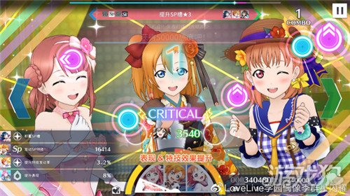 比如在演唱会中,玩家会积蓄屏幕下方的SP槽,点击蓄满的SP槽即可发动SP特技,特技能立刻获得大量热度并使获得热度和特技效果得到加成。而SP类型的学园偶像相比别的类型能够更快地积蓄SP槽,从而使玩家能更快地发动SP特技。