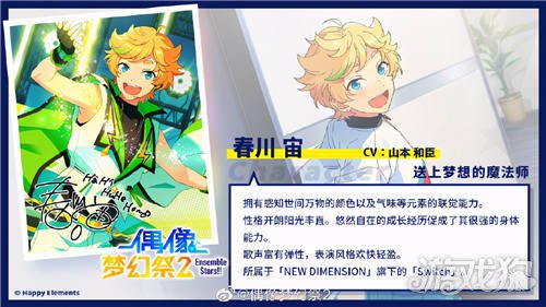 在由乐元素开发的音乐节奏手游《偶像梦幻祭2》中,春川宙作为送上梦想的魔法师,为粉丝们带来了充满幸福的表演。下面就来看看春川宙首次公开的个人档案吧!