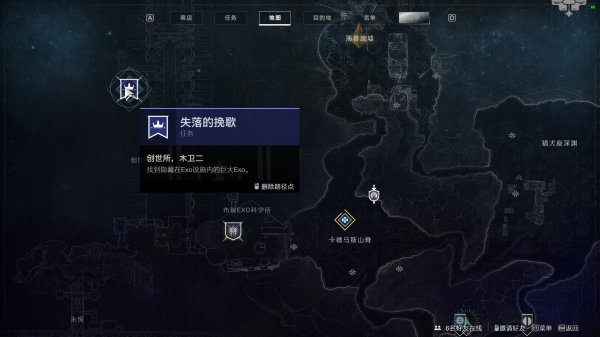 没有卵用的位置 (其实这个遗失区域的最后好像也有一个exo),完成后下一步任务:失落的挽歌