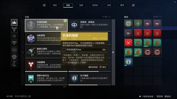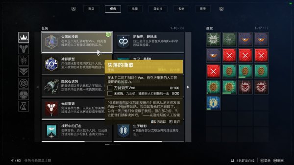 不知道会不会每周轮换。我经历的过程是在极寒条件下击败敌人。外部环境下会叠加刺骨严寒BUFF,最高10层,好像会降低恢复速度(不清楚是否增伤),在火炉旁边可以快速清掉BUFF,消灭一个VEX会掉一个红色三角块可以清两层BUFF。全程是打怪加跑酷,最后一个重生限制打九头蛇BOSS。
