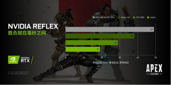 在一些3A大作中,毫秒之间决定角色生死,竞技类游戏(例如 VALORANT、“堡垒之夜 (Fortnite)”和“Apex 英雄 (Apex Legends)”需要更高的帧率和更低的系统延迟,NVIDIA® Reflex 可以带来出色的制胜优势。GeForce® RTX 30 系列 GPU 和 NVIDIA® G-SYNC® 显示器的组合可提供更低延迟和更出色的响应速度,这套针对竞技类游戏量身打造的革命性技术,可帮助玩家更快地捕获目标,更迅速地作出反应并提高瞄准精度。