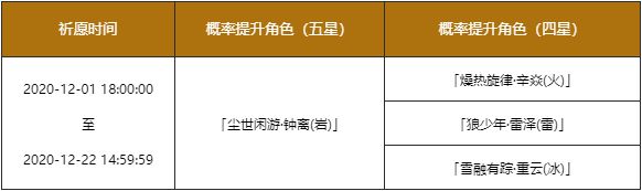 《原神》12月1日更新了钟离的UP池,被戏称为岩王爷的钟离可以在池子期间内进行祈愿。下面为大家带来《原神》12月1日更新内容介绍,希望对大家有用。